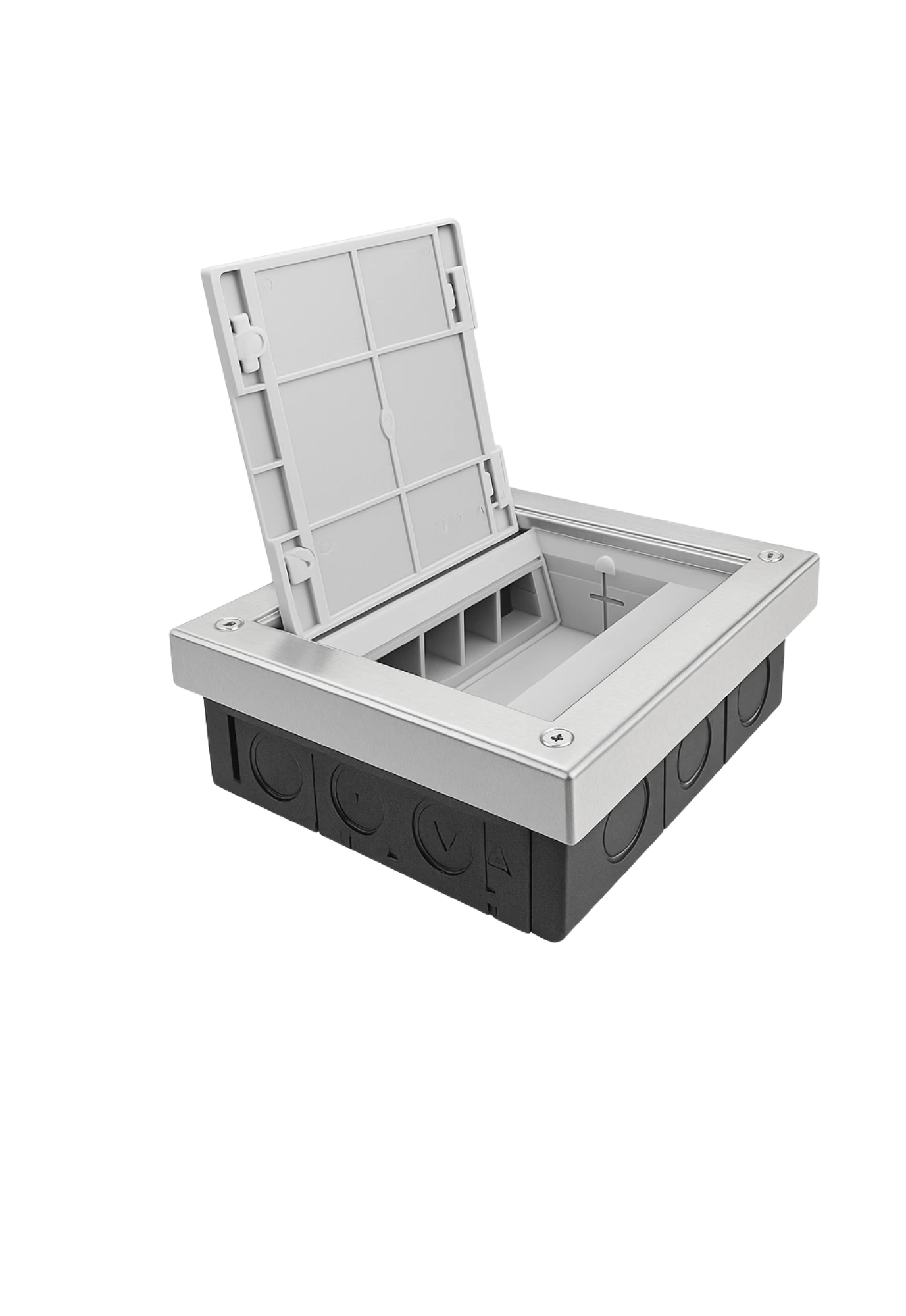 They are underfloor systems applied in the interiors of modern buildings. Underfloor cable trays provide the highest level of cable security and are connected to the electrical network via modern-looking junction boxes. Telephone, data and network terminals can also be connected through a single point thanks to junction boxes arranged in 8 or 12-piece.